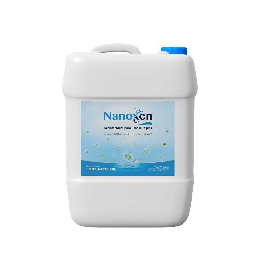 LÍQUIDO DESINFECTANTE NANOXEN 20 L (1 pieza) Nanoxen es un innovador producto nanotecnológico de amplio espectro que elimina e inhibe bacterias, virus y hongos dañinos para el ser humano.